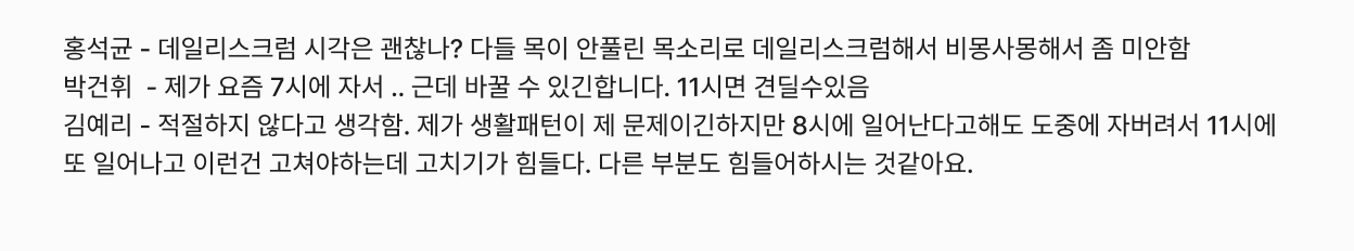 그러자 팀원들로부터 아침에는 개인 일정이 있거나 생활 패턴상 맞추기 어렵다는 의견이 나왔다.