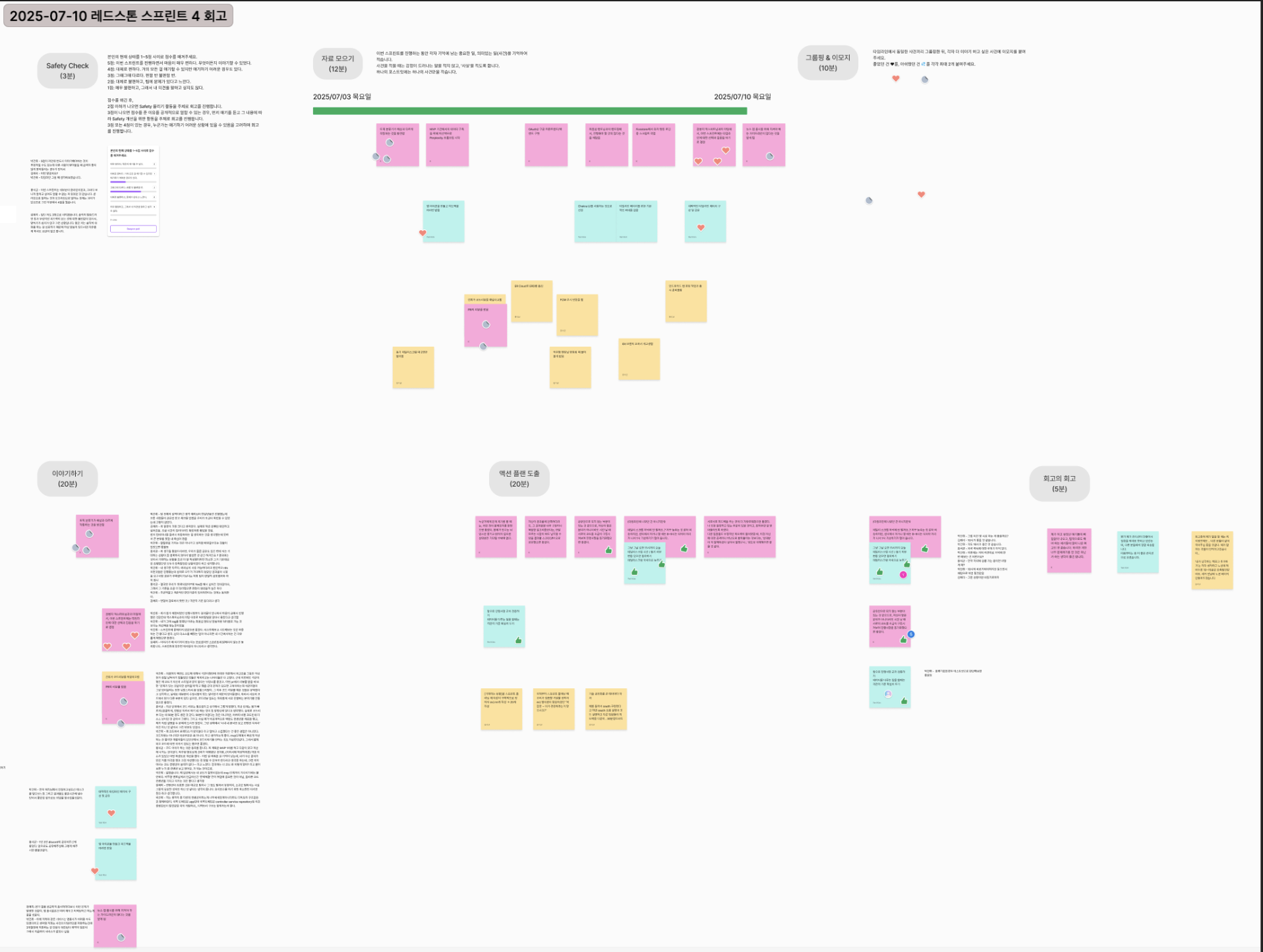 매 스프린트가 끝날 때마다 회고를 진행했다. 회고는 FigJam을 활용해 약 1시간 동안 진행했다.