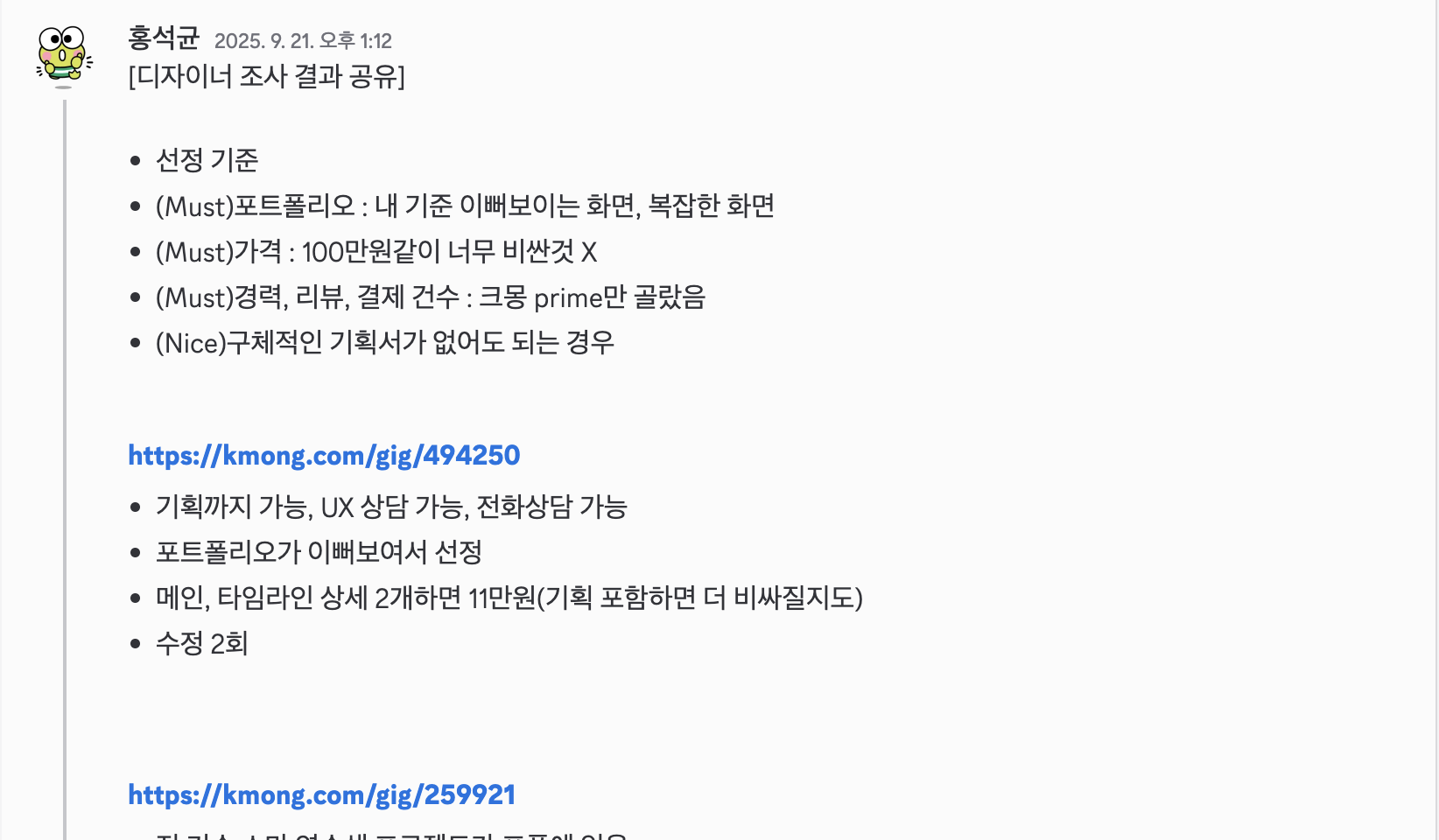 결과적으로는 팀원 모두가 만족할 수 있는 디자이너를 찾을 수 있었다.